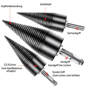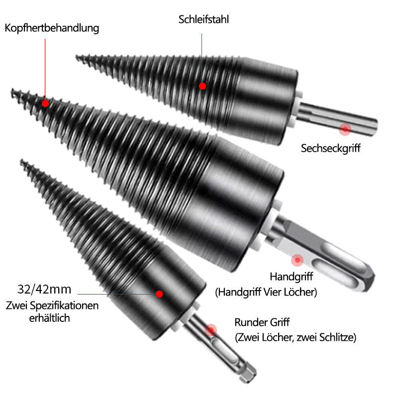 42 mm Bohrer: Für größere oder härtere Holzstücke, hohe Durchdringungskraft für müheloses Spalten.